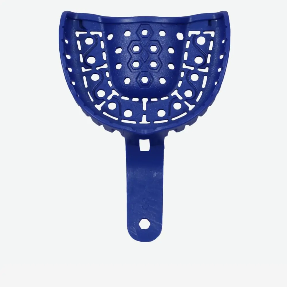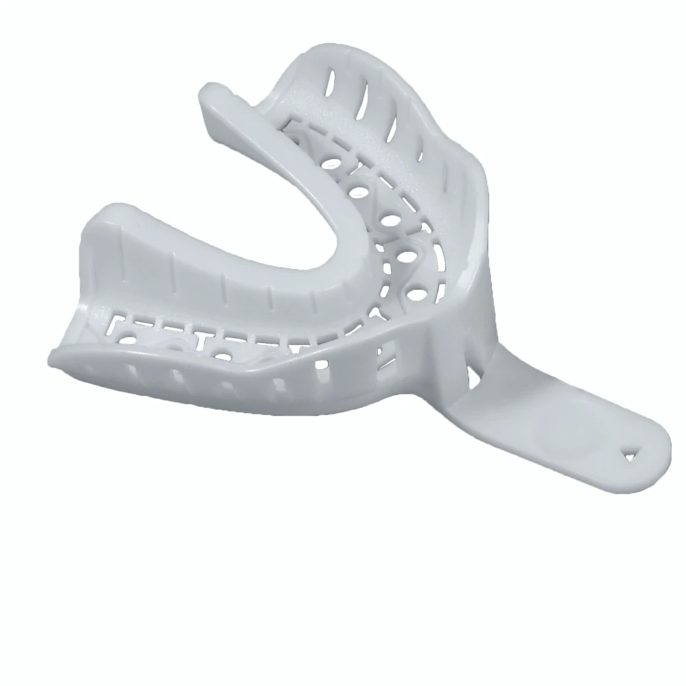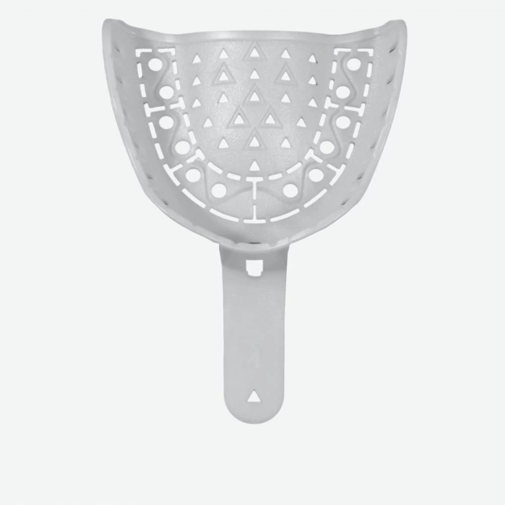 Single-use plastic impression trays with integrated handle. Constructed from rigid, recyclable ABS for accurate, comfortable and distortion free impressions.